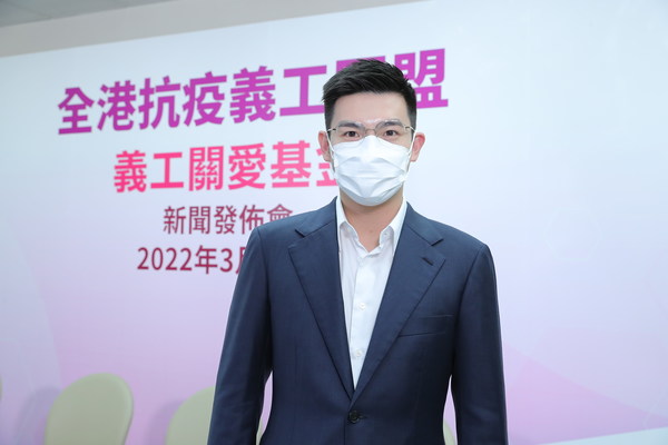 全港抗疫義工同盟義工關愛基金主席譚鎮國感謝一眾義工朋友無懼感染投身前線抗疫工作,並詳述義工關愛基金將提供的三大援助舉措,一是向染疫義工提供一次性應急援助金港幣五千元,如因抗疫不幸身故,將向其家人發放一次性撫恤金港幣三萬元,以減輕義工家庭的即時經濟負擔;二是為前線義工免費提供暫住酒店,以降低義工家人染疫風險;三是為全港性的大型抗疫義工行動提供資助,認可的義工團均可遞交資助申請。